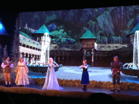 I was walking around and as I walked by the Frozen sing along they said they were about to shut the doors but there were a few seats available. Therefore I went inside “For the First Time in Forever: A Frozen Sing-Along.” This is the first time I’ve seen the show since they moved it to the bigger theater where American Idol Experience used to be. The two historians were hysterical!